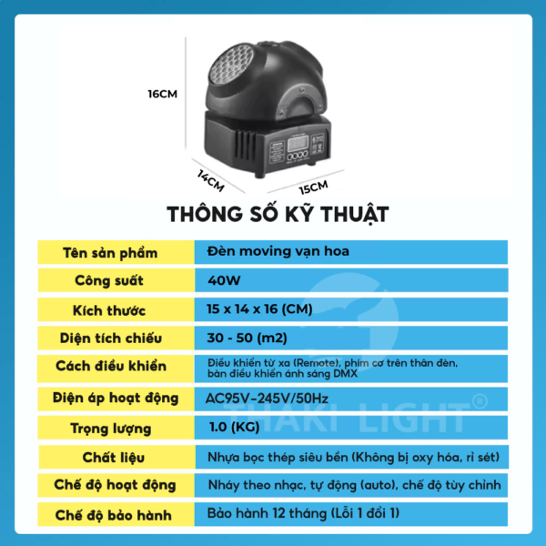 🔴 Thông số kỹ thuật sản phẩm Đèn moving nấm vạn hoa THAKI 10 mắt