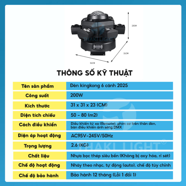 Đánh giá Đèn kingkong 6 cánh THAKI LIGHT 2025 bản nâng cấp, nháy theo nhạc, hiệu ứng đa dạng cho sự kiện, quán bar, karaoke,..