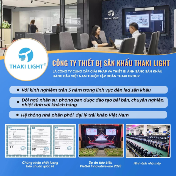 ▶ Cách điều khiển: Remote, phím cơ trên thân đèn, bàn điều khiển ánh sáng DMX