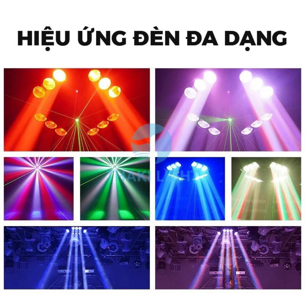 ✅ Đa dạng màu sắc: 12 bóng đèn RGBW LED và 2 bóng LED trắng kết hợp với hiệu ứng laser trắng giúp tạo ra nhiều hiệu ứng ánh sáng phong phú và sinh động.