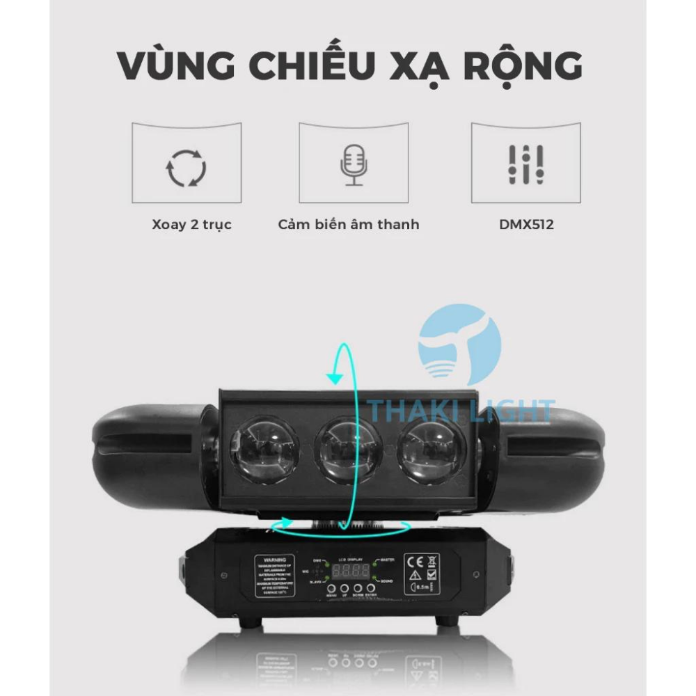 ✅ Điều khiển: DMX 512, Master-slave, Tự động, Âm thanh