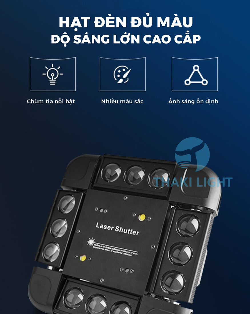 - Thông tin sản phẩm Đèn moving 12 mắt vuông THAKI Đèn laser chớp Cảm biến âm thanh,đèn sân khấu, sự kiện, quán hát, hỗ trợ DMX