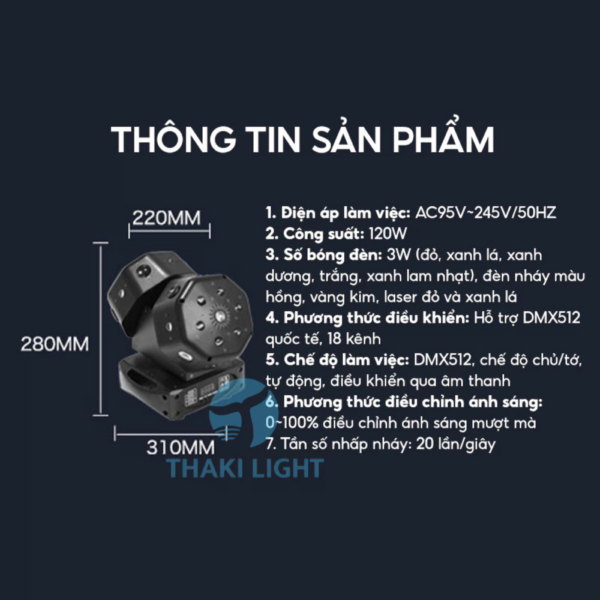 ✅ Thông số kỹ thuật Đèn moving 2 đầu THAKI
