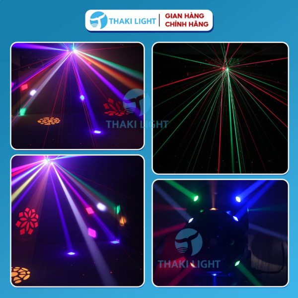 ▶ Số bóng đèn: 3W (đỏ, xanh lá, xanh dương, trắng, xanh lam nhạt), đèn nháy màu hồng, vàng kim, laser đỏ và laser xanh lá
